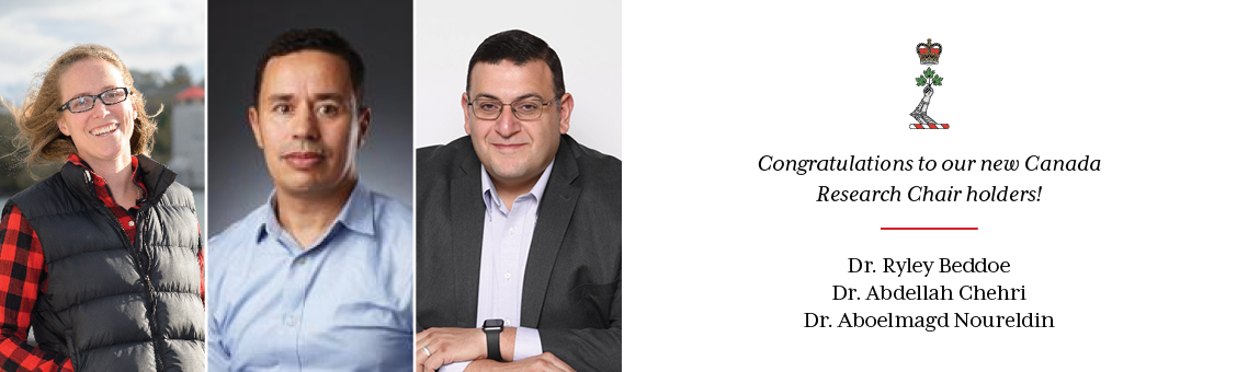 The successful holders of the Canada Research Chairs are Dr. Ryley Beddoe, Dr. Abdellah Chehri and Dr. Aboelmagd Noureldin. Their achievement is a testament to their outstanding academic excellence, perseverance, and commitment to advancing scholarly inquiry. Their respectively recognized expertise is of high value for defence-based research.