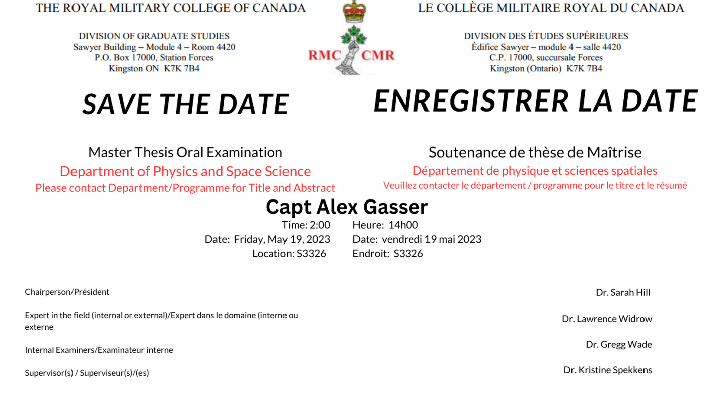 - Supervisor - Dr. Kristine Spekkens, RMC