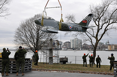 En tant que première étape d’un projet de restauration, l'avion de chasse a été retiré de son socle en béton, démonté et chargé sur un camion à plate-forme pour être transporté à la BFC Trenton, où il sera remis à neuf aux couleurs et aux insignes qu’il arborait fièrement dans les années 1950.