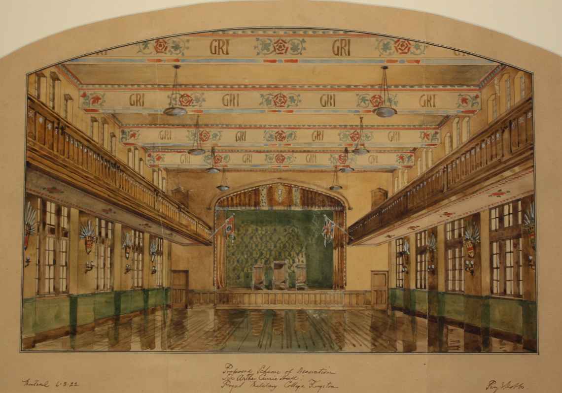 Aquarelle de la conception des fresques décoratives de la salle Currie